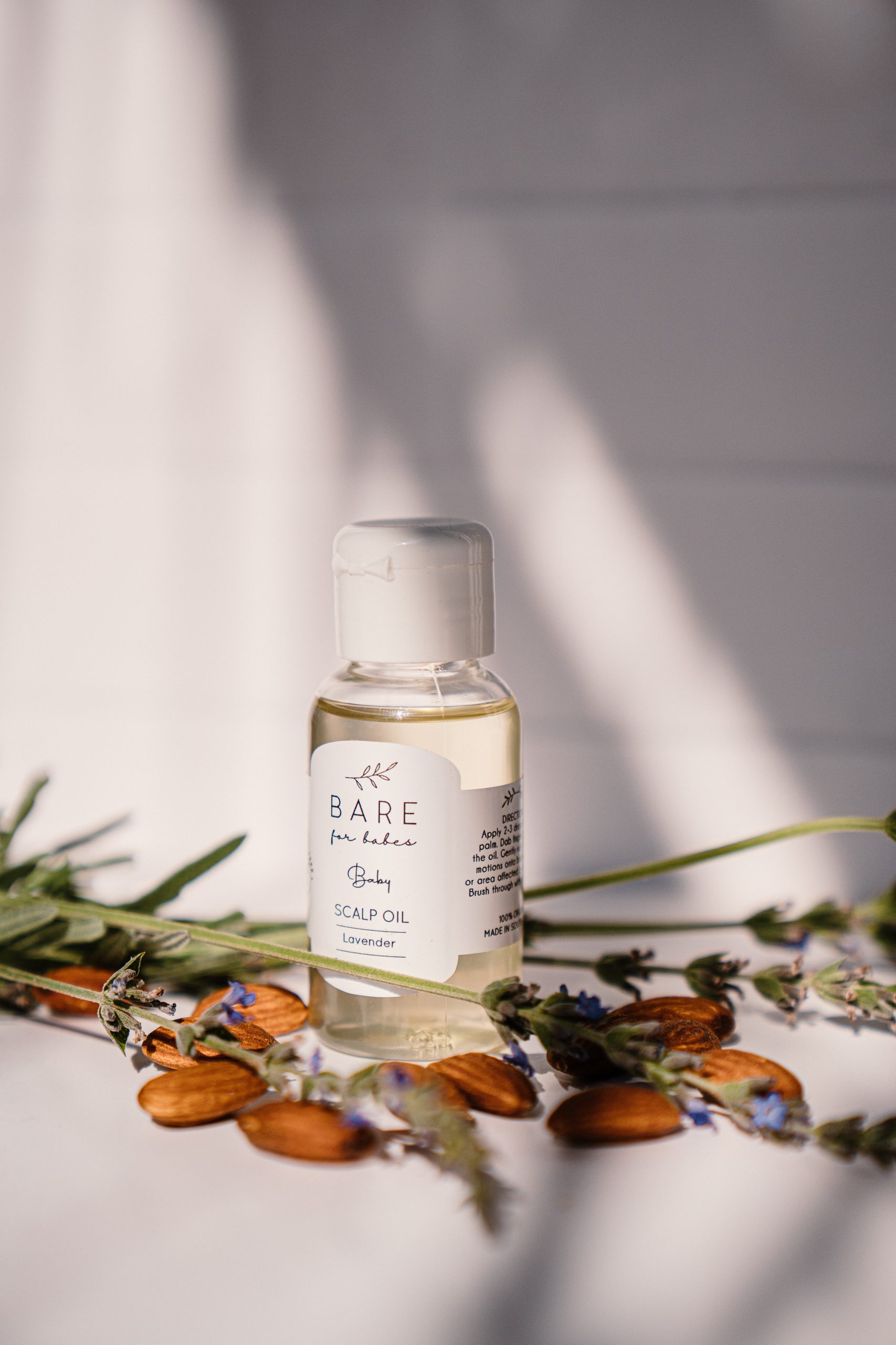 Bare for babes Scalp Oil is a combination of natural oils specially formulated for babies scalps, with their skin sensitivities in mind. Coconut Oil to add nourishment and moisture as well as offering anti-fungal benefits. Castor Oil to boost hair growth and add hydration. Almond Oil, rich in vitamins and minerals, to promote healthy scalp and soft hair. Aiming to assist in gently releasing cradle cap scales from the scalp.